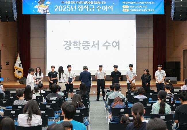 [한국기자연대] (재)전북특별자치도교육청사랑의장학회는 4일 전북특별자치도교육청 2층 강당에서 2025년 장학금 수여식을 개최했다.