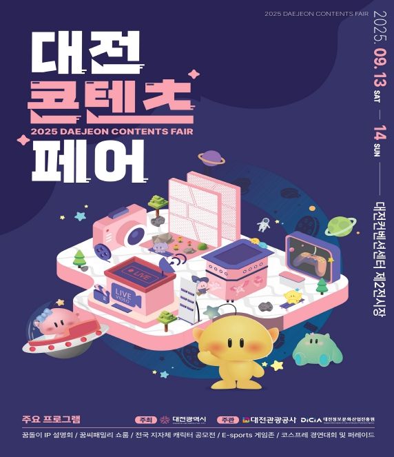 [한국기자연대] 대전시는 오는 9월 13일부터 14일까지 대전컨벤션센터 제2전시장에서 ‘2025 대전콘텐츠페어’를 개최한다고 4일 밝혔다.