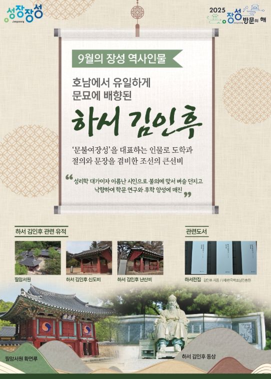 [한국기자연대] 장성군이 9월의 역사 인물로 하서 김인후(1510~1560) 선생을 선정했다.