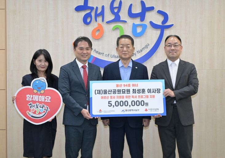 [한국기자연대] (재)울산공원묘원 최성훈 이사장은 8일 남구청을 방문해 지역 어르신들의 정서적 건강 증진을 위한 이웃돕기 성금 500만 원을 전달했다.