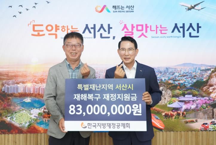 [한국기자연대] 충남 서산시는 9일 한국지방재정공제회로부터 특별재난지역 재해복구 재정 지원금 8천3백만 원을 전달받았다고 밝혔다.