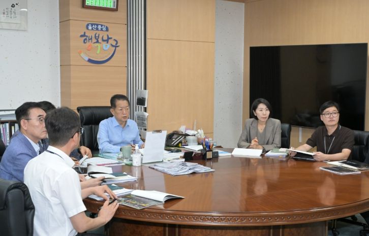 [한국기자연대] 울산 남구는 9일 구청장실에서 서동욱 남구청장과 관계 공무원, 전문가 등 10여 명이 참석한 가운데‘디자인거리일원 겨울 빛 야간경관 연출 및 운영 용역’ 추진 상황을 점검하는 디자인보고회를 개최했다.