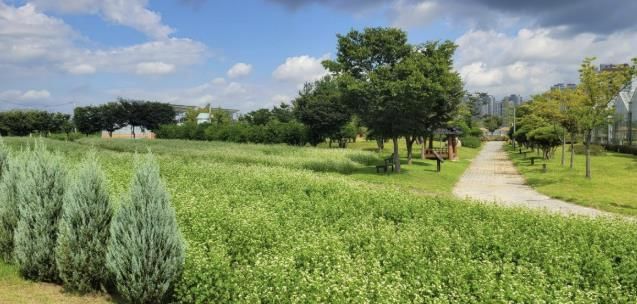 시는 단재로 480-2 일원 농업기술센터 이벤트 정원 총 2,850㎡ 면적에 식재한 메밀꽃이 만개했다고 10일 밝혔다. 메밀꽃은 약 2주 동안 만개한 상태로 시민들을 만날 예정이다.