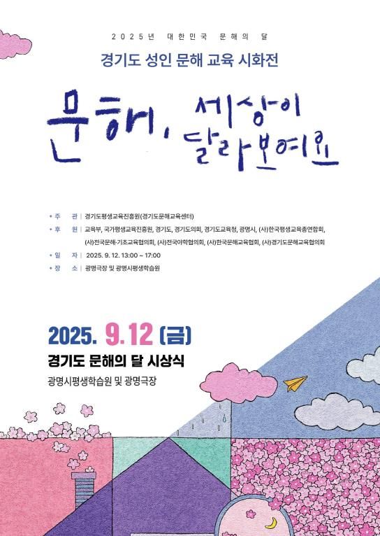 [한국기자연대] 경기도평생교육진흥원은 세계 문해의 날(9월 8일)을 기념해 오는 12일 광명시평생학습원과 광명극장에서 ‘2025년 경기도 문해의 달’ 기념행사를 연다.