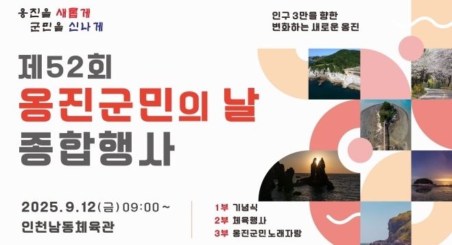 [한국기자연대] 옹진군은 오는 12일에 인천 남동체육관에서 ‘제52회 옹진군민의 날 기념 종합행사’를 개최한다고 밝혔다.