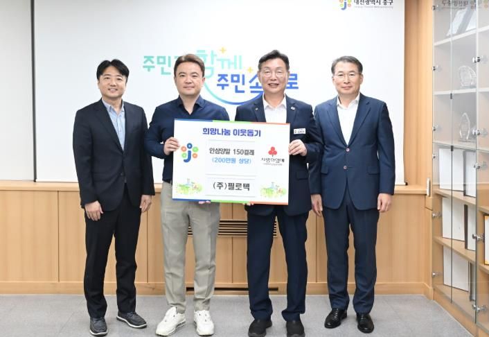 김제선 중구청장은 “지역사회를 위해 따뜻한 기부를 실천해주신 ㈜필로텍에 감사드린다”며, “기탁해주신 안심 양말은 도움이 필요한 주민들을 위하여 소중하게 사용되도록 하겠다”라고 답했다.