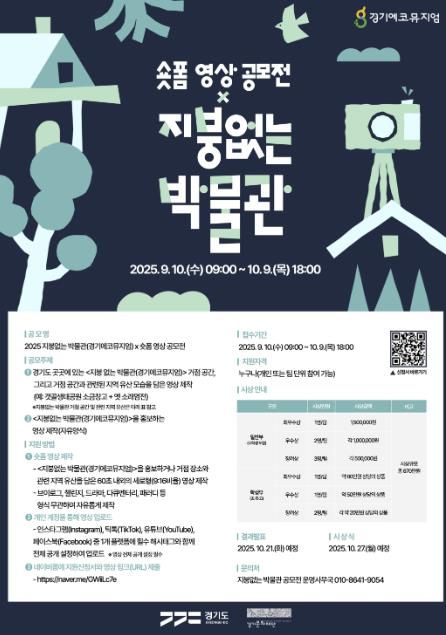 [한국기자연대] 경기도와 경기문화재단은 우리가 살아가는 일상의 발자취를 ‘지붕없는 박물관’으로 만들어 가는 〈지붕없는 박물관(경기에코뮤지엄)〉 사업의 10년차를 맞아, 시민과 함께 콘텐츠를 발굴하고 공유하기 위해 '2025 지붕없는 박물관(경기에코뮤지엄) × 숏폼 영상 공모전'을 개최한다.