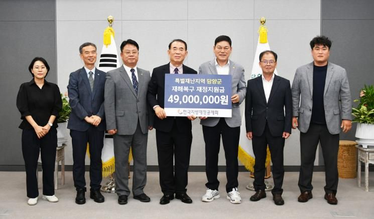 [한국기자연대] 담양군은 특별재난지역 선포에 따라 한국지방재정공제회로부터 피해 복구와 군민 생활 안정을 위한 재해복구 재정지원금 4,900만 원을 지원받았다고 10일 밝혔다.