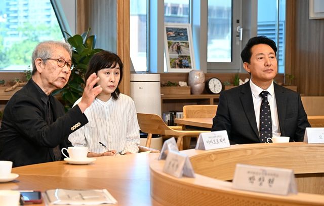 [한국기자연대] 오세훈 서울시장은 10일 오전 11시 20분 집무실에서 ‘2024 프리츠커상’을 수상한 일본인 건축가 야마모토 리켄(山本理顕)을 만나 ‘서울시민을 위한 미래 주거공간’에 대한 프레젠테이션을 청취하고 저출생‧고령화 사회 속 공동주택의 역할과 미래에 대해 이야기 나눴다.