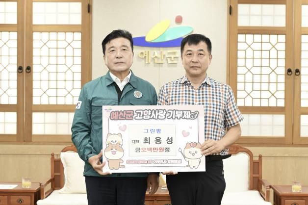 [한국기자연대] 예산군은 최용성 그린팜 대표가 지난 10일 고향인 예산군에 고향사랑기부금 500만원을 기탁했다고 밝혔다.