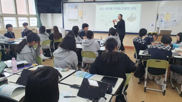 학급별 전문 강사가 참여해 2차시로 운영됐으며, ‘울산 바다 생명 이야기’를 주제로 지역 해양 생태 자원의 중요성과 보전 방법을 탐구하는 활동이 이뤄졌다.