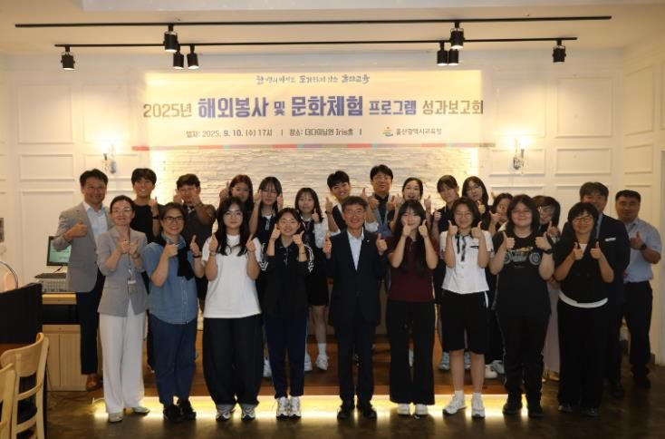 [한국기자연대] 울산광역시교육청은 지난 10일 중구의 한 식당에서 올해 처음으로 진행된 ‘2025 해외 봉사·문화 체험 프로그램’ 성과보고회를 열었다.
