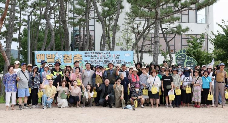 [한국기자연대] 김정헌 인천 중구청장이 지난 9일 영종 씨사이드파크 맨발길에서 열린 ‘2025년도 하반기 맨발의 청춘’ 걷기 프로그램 현장을 찾아 주민들과 함께 걸으며 소통하는 시간을 가졌다.