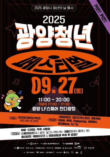 [한국기자연대] 광양시는 ‘2025년 청년의 날’을 기념해 오는 9월 27일 오전 11시부터 20시까지 LF스퀘어 잔디광장에서 ‘2025년 광양 청년 페스티벌’을 개최한다고 밝혔다.