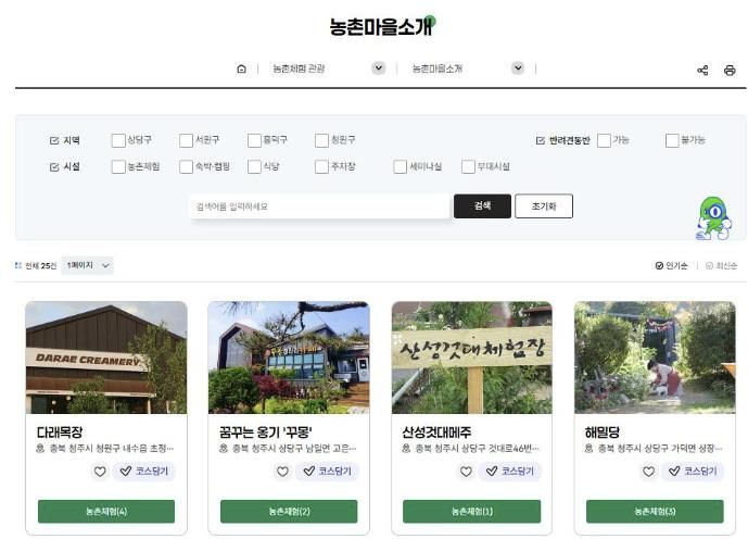 [한국기자연대] 청주시는 15일부터 농촌 체험 및 관광 정보를 통합 제공하는 온라인 플랫폼 ‘청주여유’를 정식 운영한다.