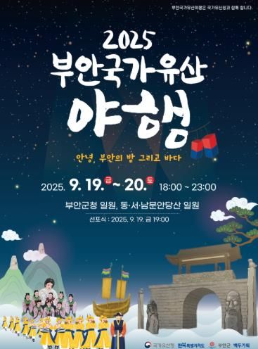 [한국기자연대] 부안군은 오는 19일~20일 국가민속유산으로 지정된 동문안·서문안 당산을 비롯한 당산유산 밀집구역에서 ‘2025 부안국가유산 야행’이 오후 6시부터 밤 11시까지 진행된다.