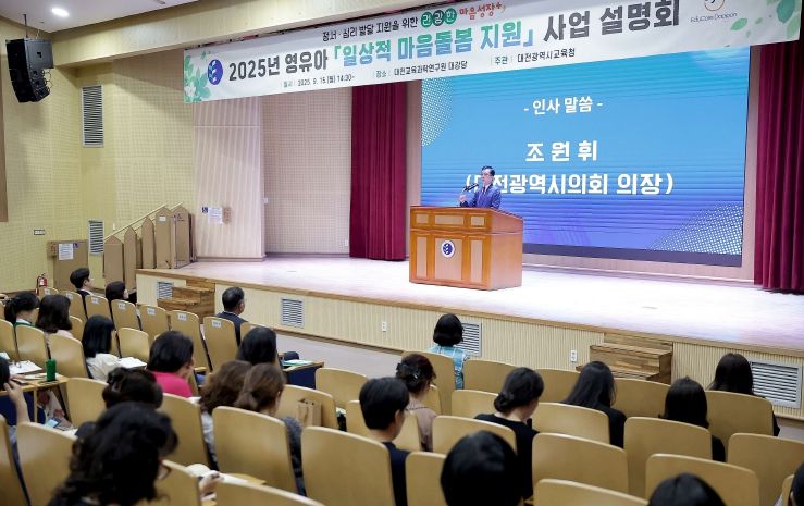 [한국기자연대] 대전시의회 조원휘 의장은 15일 대전교육과학연구원에서 개최된 2025년 영유아 일상적 마음돌봄 지원사업 설명회에 참석해 보육 일선에서 최선을 다하는 보육인들께 감사를 표하고, 아이들과 보육인들 모두 행복한 보육환경 조성을 약속했다.