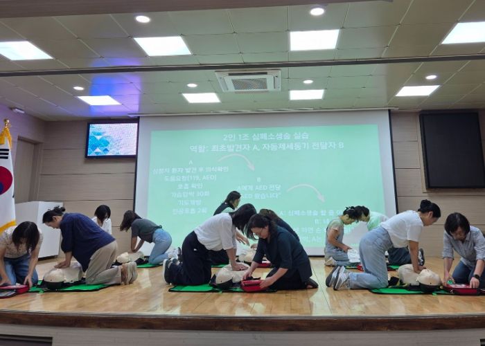 [한국기자연대] 의정부교육지원청은 16일, 선택형 돌봄 초등보육전담사 대상으로 역량강화 연수를 실시했다. 이번 연수는 심폐소생술 실습 교육으로, 위급 상황 발생 시 신속하고 정확한 대응 능력을 기르기 위해 마련됐으며, 안전한 돌봄 프로그램 운영을 위한 필수적인 교육으로 진행됐다.