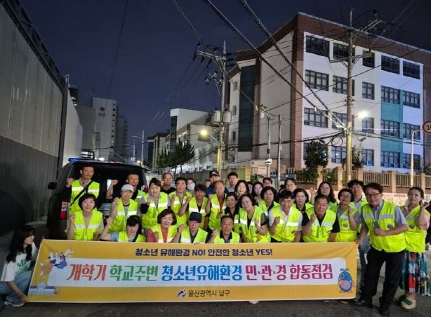 [한국기자연대] 울산 남구는 2025년 2학기 개학을 맞아 달동 일대 학교 주변 번화가에서 민관경 합동점검을 실시했다고 16일 밝혔다.