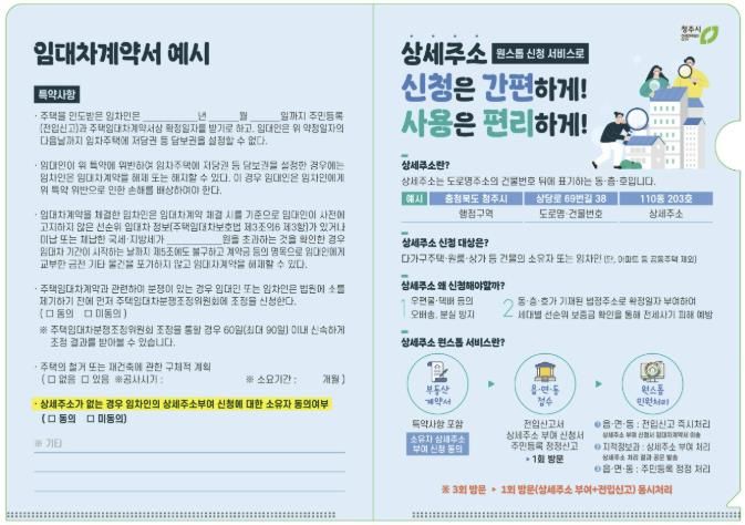 시는 임대차계약서 작성 단계에서 임대인이 상세주소 부여에 동의할 수 있도록 특약사항을 기재하도록 안내하고 있다. 이를 위해 한국공인중개사협회 충청북도회와 협력해 지역 내 공인중개사를 대상으로 적극적인 홍보를 추진하고 있다.