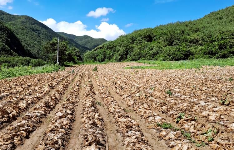 이번 재해는 봄배추 출하를 앞둔 시기에 잦은 강우와 폭염이 겹치면서 발생했으며, 군 관내 60농가, 51ha에서 피해가 집계됐다.