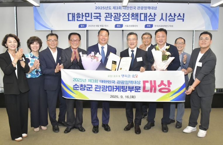 [한국기자연대] 순창군이 지난 15일 한국관광정책연구학회가 주관한‘2025 제3회 대한민국 관광정책대상’에서 관광마케팅 부문 대상을 수상했다.