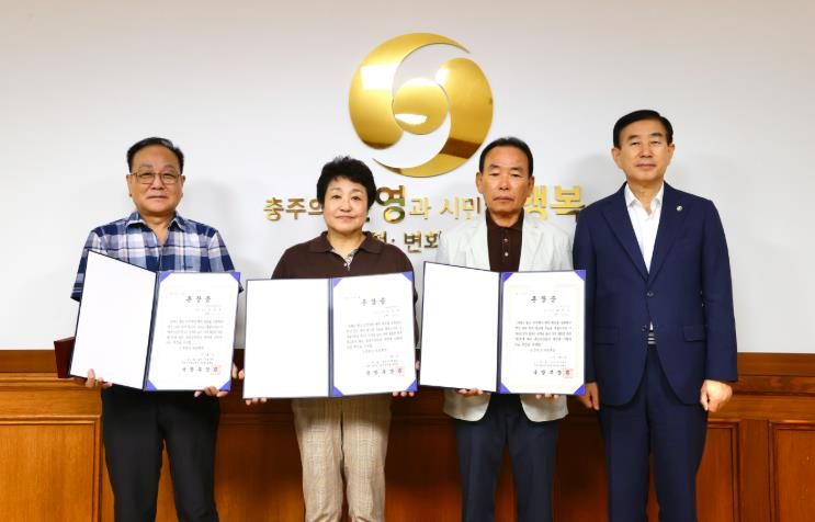 [한국기자연대] 충주시는 17일 시청 소회의실에서 6.25 전쟁에 참전해 공을 세운 고 안종국 중사, 고 이윤탁 대위, 고 최영도 병장의 유족에게 화랑무공훈장을 전수했다.