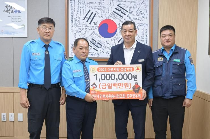 [한국기자연대] 공주시는 지난 17일 대전개인택시운송사업조합 공주향우회가 추석 명절을 맞아 어려운 이웃을 위해 성금 100만 원을 기탁했다고 밝혔다.