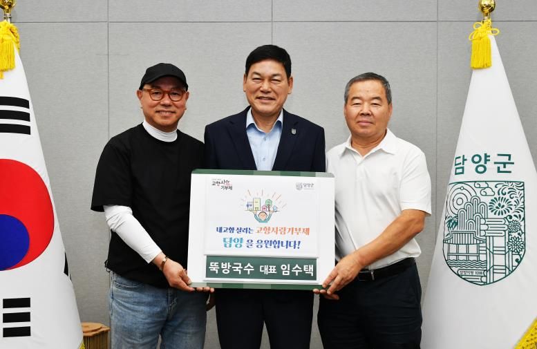 [한국기자연대] 담양군은 지난 16일 담양읍 소재 ㈜뚝방국수 가족이 고향사랑기부에 동참했다고 밝혔다.