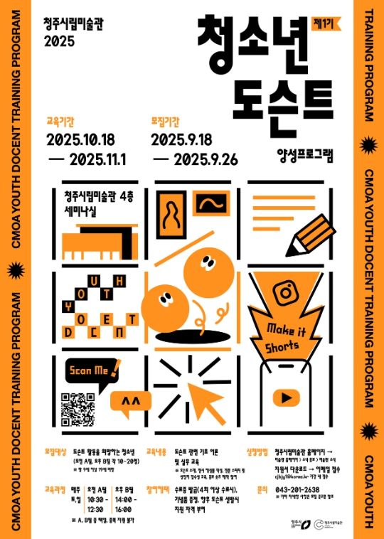 [한국기자연대] 청주시립미술관은 18일부터 오는 9월 26일까지 ‘제1기 청소년 도슨트 양성 프로그램’ 참가자를 모집한다고 밝혔다.