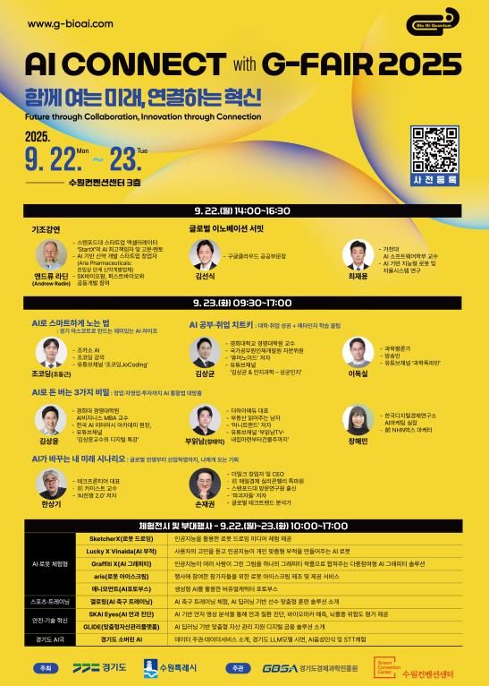[한국기자연대] 경기도는 22일부터 23일까지 수원컨벤션센터에서 인공지능(AI)과 실생활의 융합을 주제로 한 ‘AI Connect with G-FAIR 2025(에이아이 커넥트 위드 지페어)’를 개최한다.