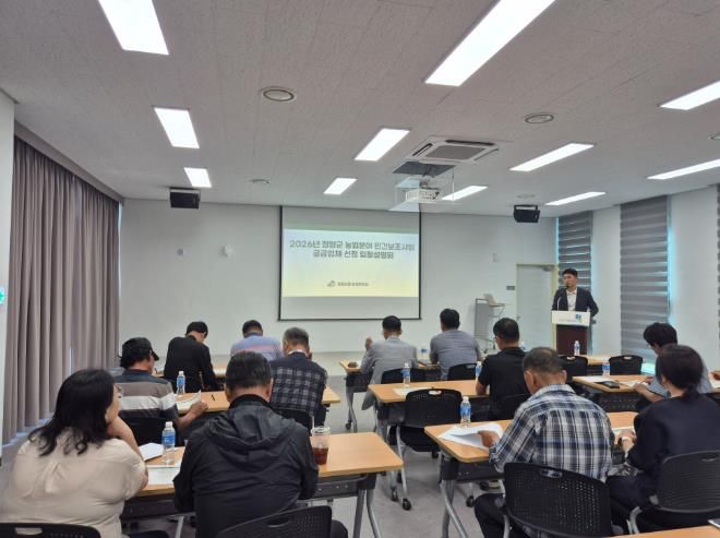[한국기자연대] 청양군은 지난 18일 청양군먹거리종합타운(푸드플랜 홍보관)에서 2026년 청양군 농업분야 민간보조사업을 위한 공급업체 대상 입찰 설명회를 개최했다.