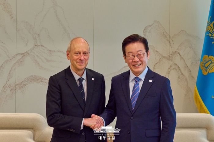 [한국기자연대] 이재명 대통령은 오늘 오후 집무실에서 '정의란 무엇인가'의 저자인 마이클 샌델 미국 하버드대 교수를 접견했다.