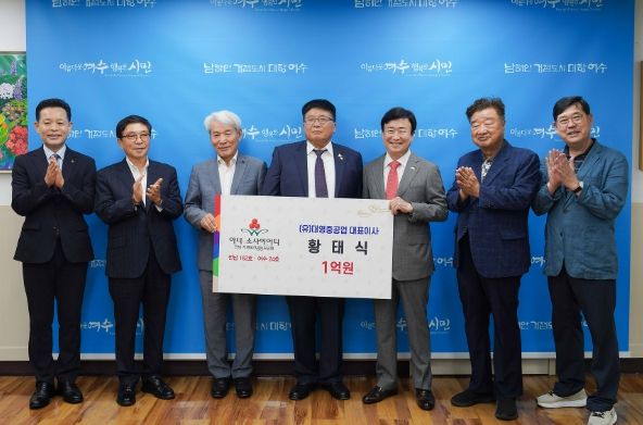황태식 대표가 기부한 성금은 전남사회복지공동모금회를 통해 여수시 저소득가정과 사회복지시설 복지 사업비로 사용될 예정이다.