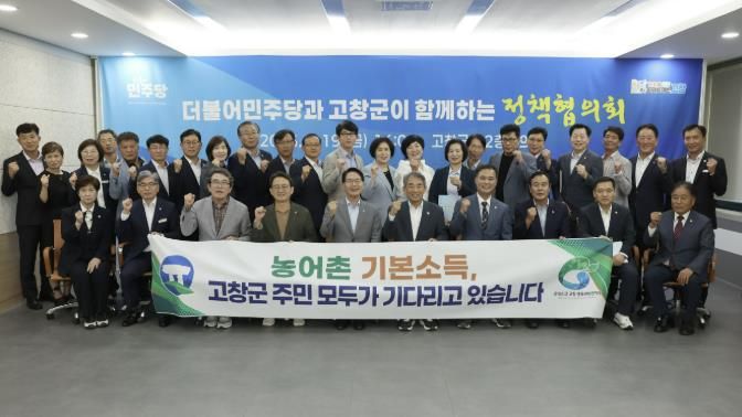22일 고창군에 따르면 지난 19일 심덕섭 고창군수, 윤준병 국회의원, 조민규 고창군의회 의장, 전북도의회 김만기·김성수 도의원 등이 참여한 ‘더불어민주당과 고창군이 함께하는 정책협의회’를 통해 농어촌 기복소득 시범사업 선정을 위한 협력 의지를 다졌다.