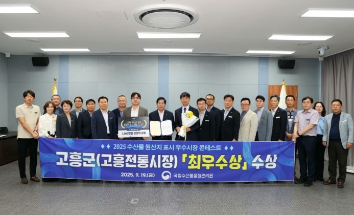 [한국기자연대] 고흥군은 고흥전통시장이 ‘2025 수산물 원산지 표시 우수시장 콘테스트’에서 전국 최고의 시장을 입증하는 최우수상을 수상했다고 22일 밝혔다.