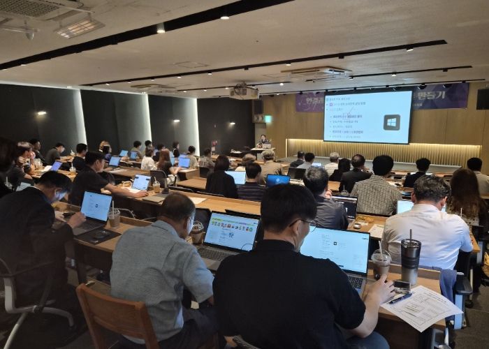 이어진 실습에서는 업무 효율화·정보 공유·소통 활성화를 위한 디지털 도구 활용법을 배우고, 참가자들이 직접 온라인 협업 도구를 활용해 우리 학교 맞춤형 온라인 교무실을 제작했다. 아울러, 하이러닝 플랫폼을 활용한 교무실 협의 활동을 체험하며 실제 교무실 내 협의 과정을 디지털 기반으로 혁신하는 방안을 모색했다.