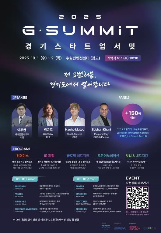 [한국기자연대] 국내 최고 수준의 글로벌 스타트업 투자 박람회인 ‘경기 스타트업 서밋(G-SUMMIT)’이 오는 10월 1일부터 2일까지 수원컨벤션센터에서 열린다.