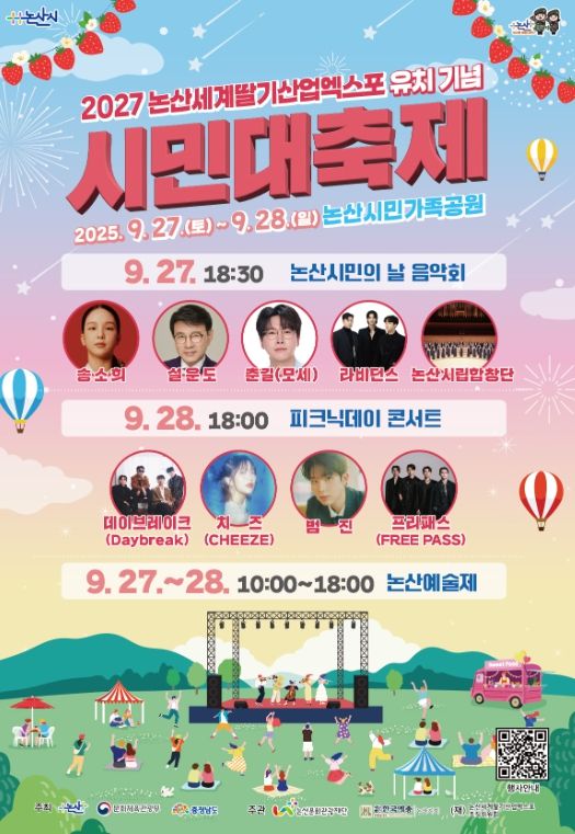 [한국기자연대] 논산시는 오는 27일부터 28일까지 논산시민가족공원에서 ‘2027 세계딸기산업엑스포 유치기념 시민대축제’를 개최한다.