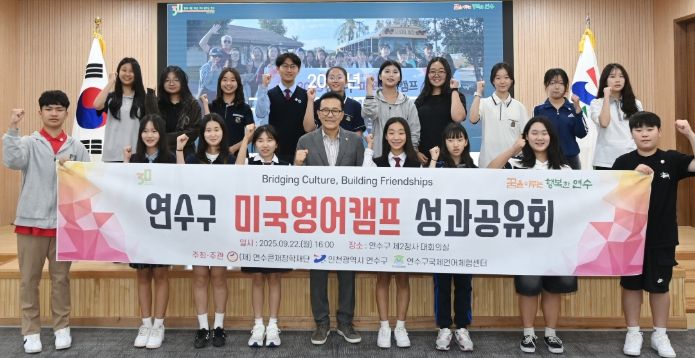 [한국기자연대] 연수구는 지난 22일 연수구 제2청사에서 ‘연수구 미국영어캠프’ 성과공유회를 개최해 참가 장학생들의 학습 성과와 글로벌 경험을 함께 나누는 자리를 마련했다.