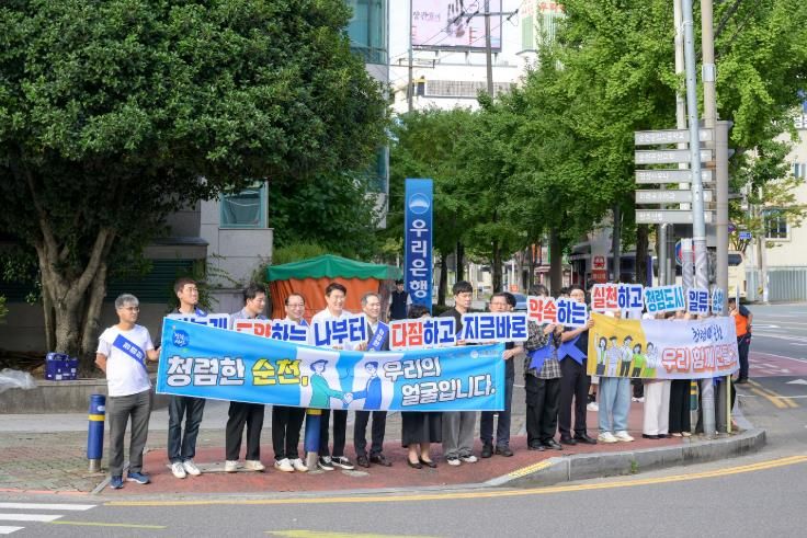 이번 캠페인은 (사)공직공익비리신고 전국시민운동연합 전남총괄본부 관계자와 공직자 20여 명이 함께 참여했으며, 출근 시간대 시민들을 대상으로 손팻말과 현수막을 활용해 청렴의 중요성과 생활 속 실천 방안을 홍보했다.