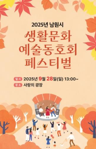 [한국기자연대] 남원시가 후원하는 2025 남원시 생활문화예술동호회 페스티벌이 9월 28일에 남원 사랑의 광장에서 개최한다.