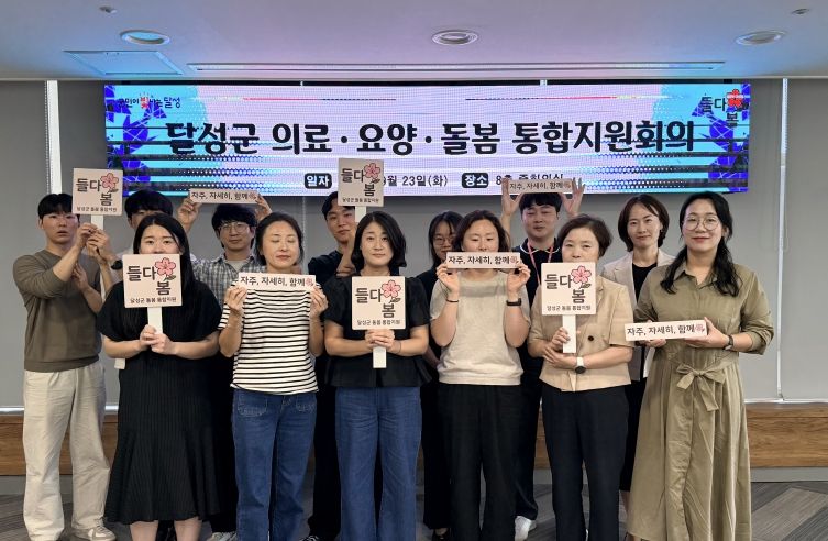 달성군은 지난 5월 의료·요양·돌봄 통합지원 시범사업 지자체로 선정되어 대구광역시 지자체 중 최초로 통합돌봄전담(TF)팀을 구성했다. 내년 3월 본사업 전면 시행을 앞두고 ‘자주, 자세히, 함께 들여다 보는 달성군 통합지원’을 통해 일상생활 수행에 어려움을 겪는 사람이 살던 곳에서 건강하게 생활할 수 있도록 돌봄통합체계 구축을 추진하고 있다.