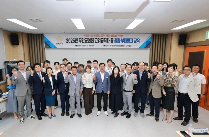 [한국기자연대] 무안군의회는 9월 23일 무안군복합문화센터 교육장에서 군의원과 의회사무과 공직자를 대상으로 청렴·부패방지 교육, 사회적 장애인식개선 교육, 4대 폭력 예방 교육을 실시했다.