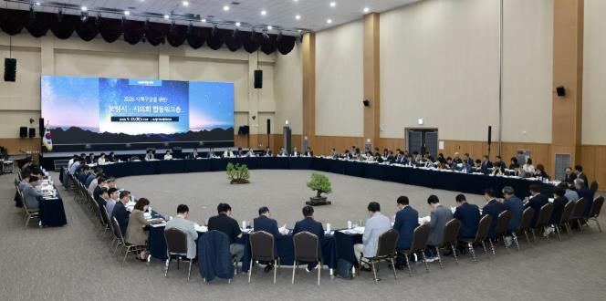 [한국기자연대] 보령시는 지난 23일 보령머드테마파크에서 김동일 보령시장과 최은순 보령시의회 의장, 본청 및 직속기관 실·과장, 읍·면·동장 등 100여 명이 참석한 가운데 ‘2026년도 시책 발굴을 위한 합동 워크숍’을 개최했다.