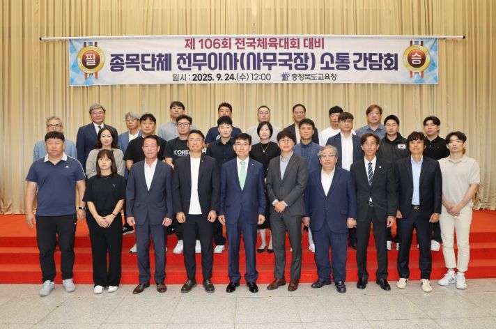 [한국기자연대] 충청북도교육청은 24일, 제106회 전국체육대회를 앞두고 충북 종목단체 임원들과 소통하는 시간을 가졌다.
