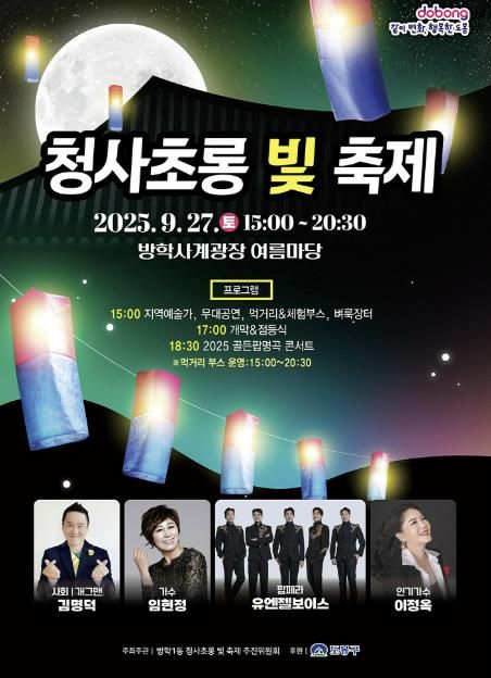 [한국기자연대] 서울 도봉구 방학1동이 9월 27일 방학사계광장 여름마당에서 청사초롱 빛 축제를 개최한다.