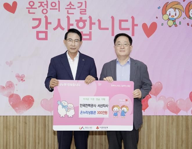 이완섭 서산시장은 “한국전력공사 서산지사의 따뜻한 나눔이 어려운 이웃들에게 큰 힘이 될 것”이라며 “추석 명절을 맞아 지역사회에 온정이 널리 퍼지길 기대한다”라고 말했다.