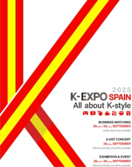 [한국기자연대] 문화체육관광부와 농림축산식품부, 해양수산부, 보건복지부는 한국콘텐츠진흥원, 한국농수산식품유통공사, 대한화장품산업연구원, 한국관광공사, 국립박물관문화재단과 함께 9월 28일부터 30일까지 스페인 마드리드에서 ‘2025 스페인 케이-박람회: 케이-스타일의 모든 것(K-EXPO SPAIN 2025 : All About K-Style)’을 개최한다.