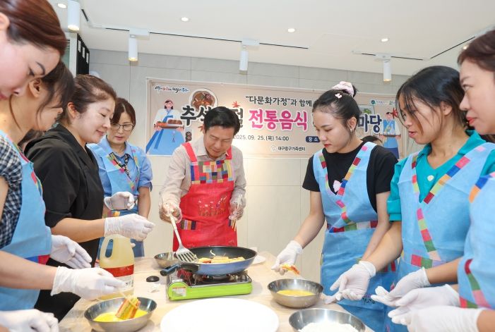 [한국기자연대] 대구 중구청과 중구가족센터는 추석 명절을 맞아 지난 25일 중구생활문화센터에서 다문화가족 봉사단 15명과 함께 전통음식 만들기 및 나눔 행사를 진행했다.